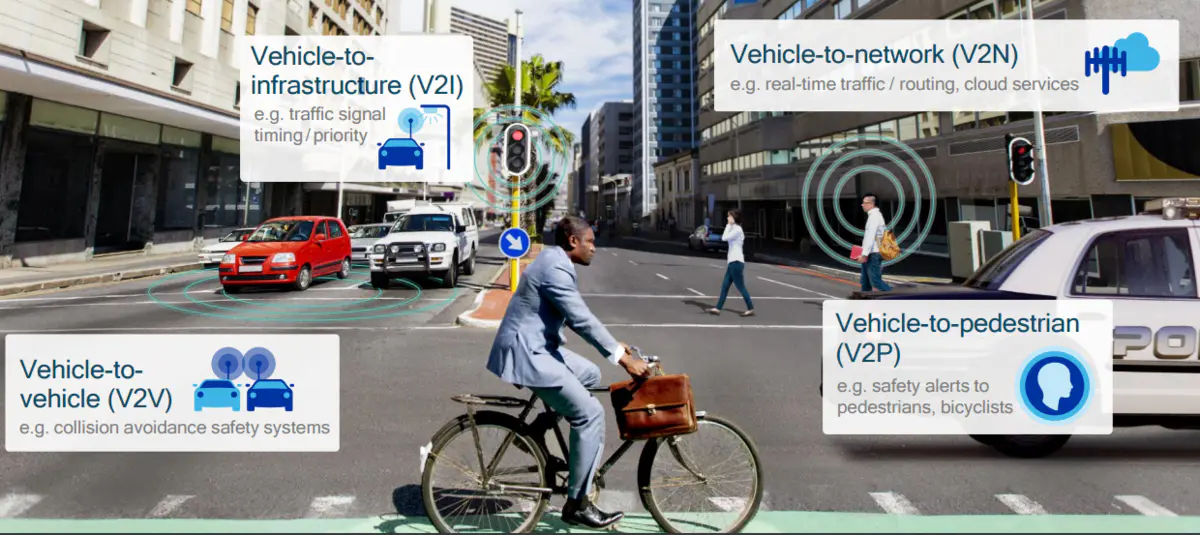 V2P(Vehicle-To-Pedestrian,車-行人)則是用做給道路上行人或非機動車安全警告。