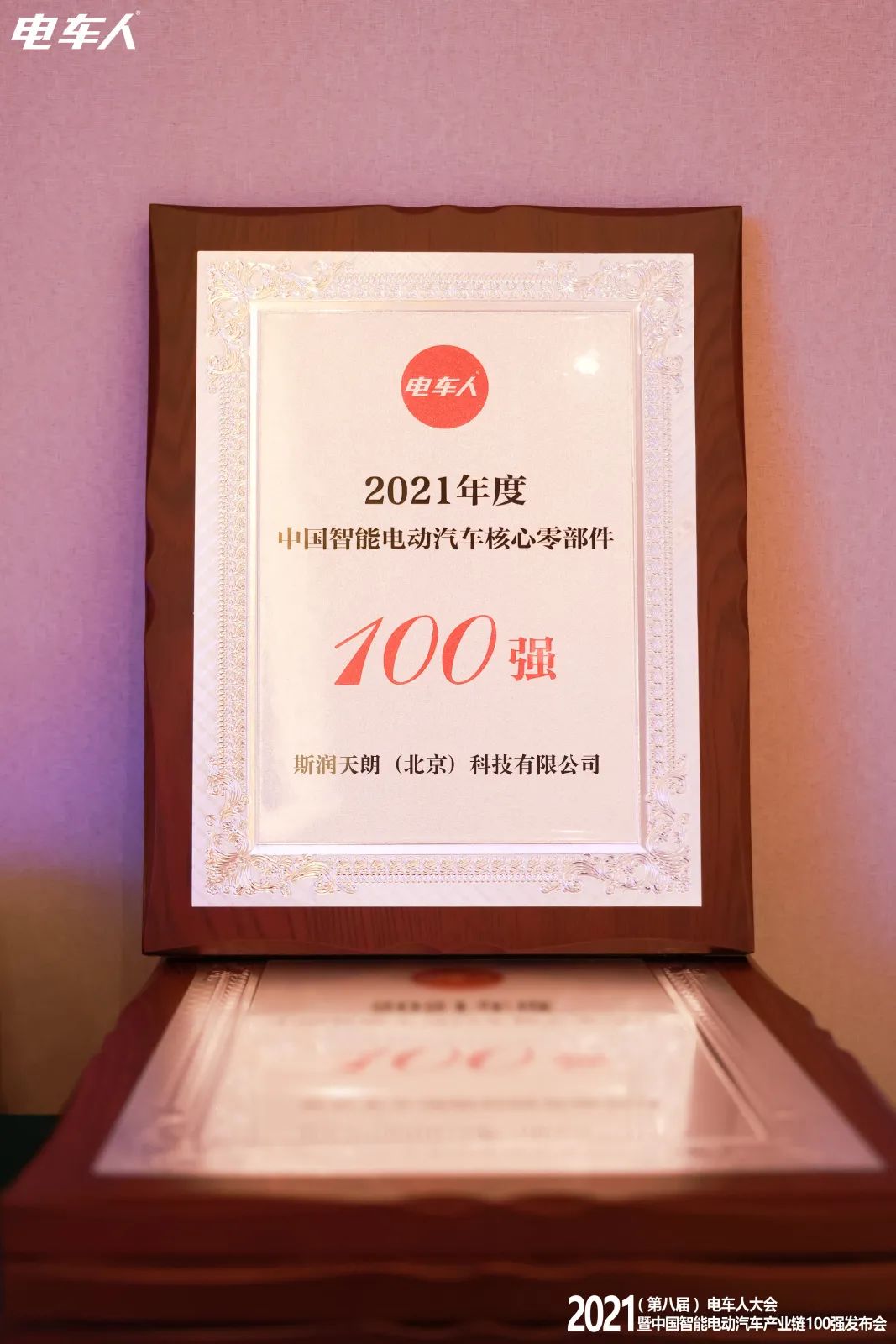 “斯?jié)櫶炖省?/b>憑借突出的產(chǎn)品、創(chuàng)新精神和具有競爭優(yōu)勢的服務,再次靠實力上榜,榮獲車聯(lián)網(wǎng)行業(yè)領域“2021年中國電動汽車核心零部件100強”之一企業(yè)。