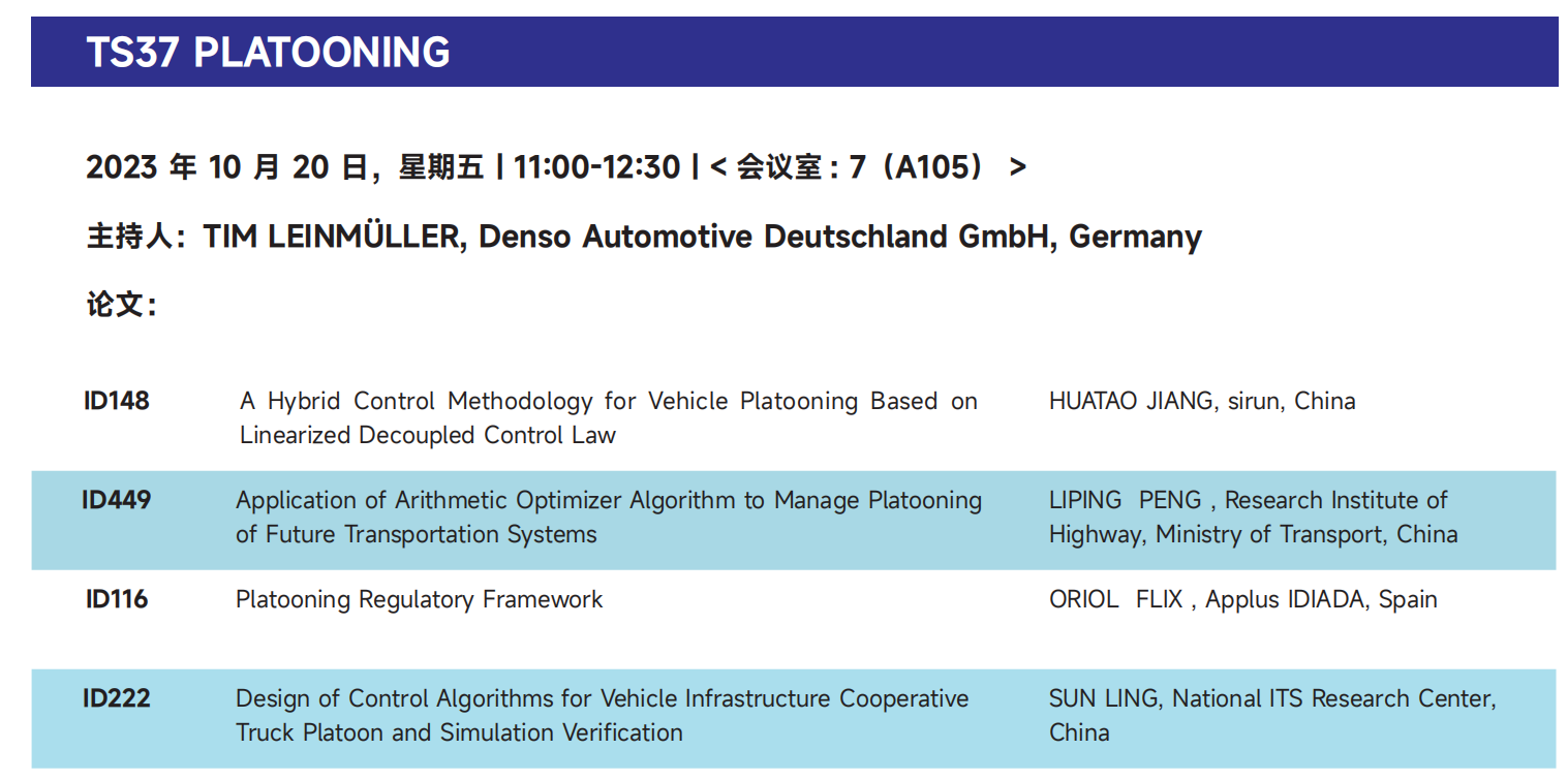 經(jīng)過ITS國際組委會的專業(yè)遴選,該論文成功入選第29屆智能交通世界大會。10月20日上午,斯?jié)櫶炖蕦⑹苎麉⒓蛹夹g(shù)論文會議:TS37 Platooning,屆時(shí)將對論文內(nèi)容進(jìn)行技術(shù)解讀,并介紹斯?jié)櫶炖试?/span>V2X網(wǎng)聯(lián)環(huán)境下車輛列隊(duì)行駛方面所做的相關(guān)工作。