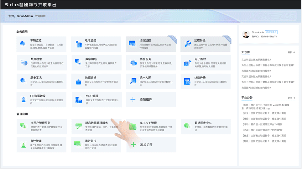 智能網(wǎng)聯(lián)開放平臺是斯?jié)櫶炖蚀蛟斓钠囍悄芫W(wǎng)聯(lián)及應用服務聚合平臺,通過接入、協(xié)議、數(shù)據(jù)、應用、服務等五大標準化技術體系以及強大的大數(shù)據(jù)底座,為用戶提供了200+ For Car組件化服務,涵蓋監(jiān)控應用、動力電池監(jiān)控、數(shù)字鑰匙、終端管理、OTA升級、CMP運營等多個維度。平臺支持多種終端集成,確保上層應用能夠根據(jù)車輛、終端、BMS整車單元的實際需求進行靈活的服務擴展。