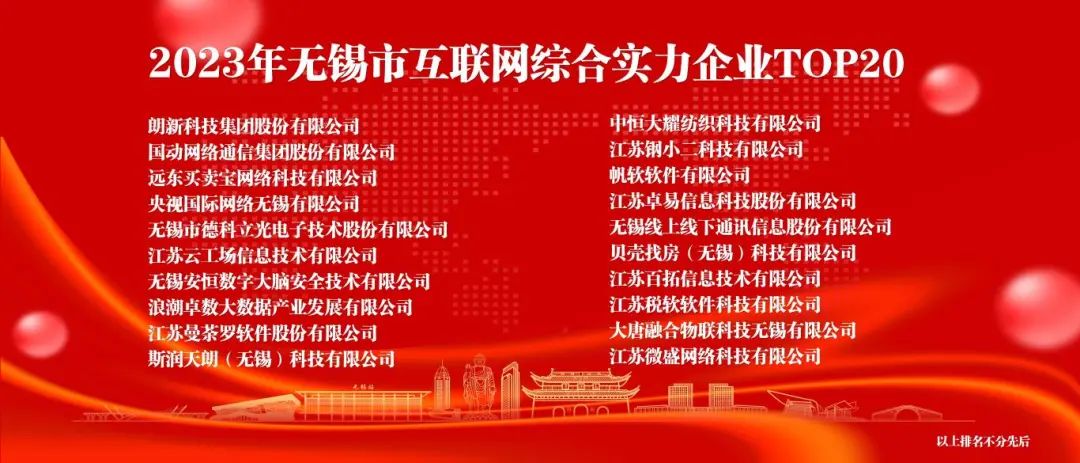 斯?jié)櫶炖蕵s膺2023年“無錫市互聯(lián)網(wǎng)綜合實力企業(yè)TOP20”
