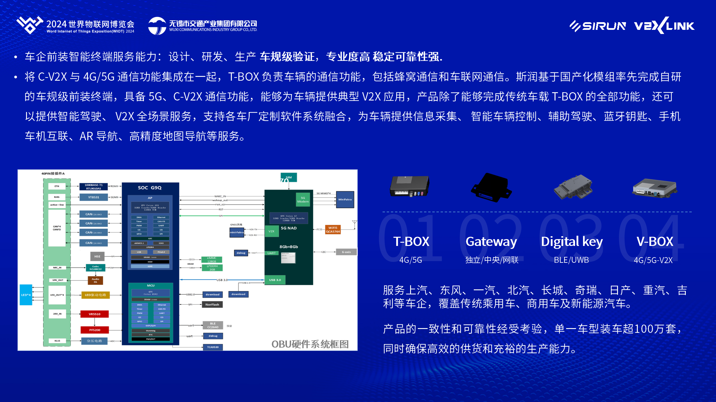 此外,斯?jié)櫶炖蔬€具備強大的前裝智能終端服務能力。公司設計、研發(fā)、生產(chǎn)的智能終端產(chǎn)品已經(jīng)廣泛應用于傳統(tǒng)乘用車、商用車及新能源汽車,單一車型出貨量超100萬套,產(chǎn)品的一致性與可靠性得到市場的廣泛認可。這些智能終端產(chǎn)品不僅能夠完成傳統(tǒng)車載T-BOX的全部功能,更能夠提供智能駕駛、V2X全場景服務,為車輛提供全方位的信息采集、智能車輛控制、輔助駕駛等多元化服務。