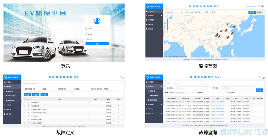 斯?jié)橢V監(jiān)控平臺(tái)設(shè)計(jì)嚴(yán)格參照國(guó)標(biāo)GB/T 32960,建設(shè)和完善新能源汽車企業(yè)監(jiān)測(cè)平臺(tái),幫助企業(yè)對(duì)整車及動(dòng)力電池等關(guān)鍵系統(tǒng)運(yùn)行安全狀態(tài)進(jìn)行監(jiān)測(cè)和管理,將公共服務(wù)領(lǐng)域車輛相關(guān)安全狀態(tài)信息上傳至地方監(jiān)測(cè)平臺(tái),企業(yè)監(jiān)測(cè)平臺(tái)接受國(guó)家監(jiān)測(cè)平臺(tái)的監(jiān)督抽查。滿足企業(yè)一級(jí)監(jiān)控,國(guó)家地方兩級(jí)監(jiān)管,三位一體的管控模式。