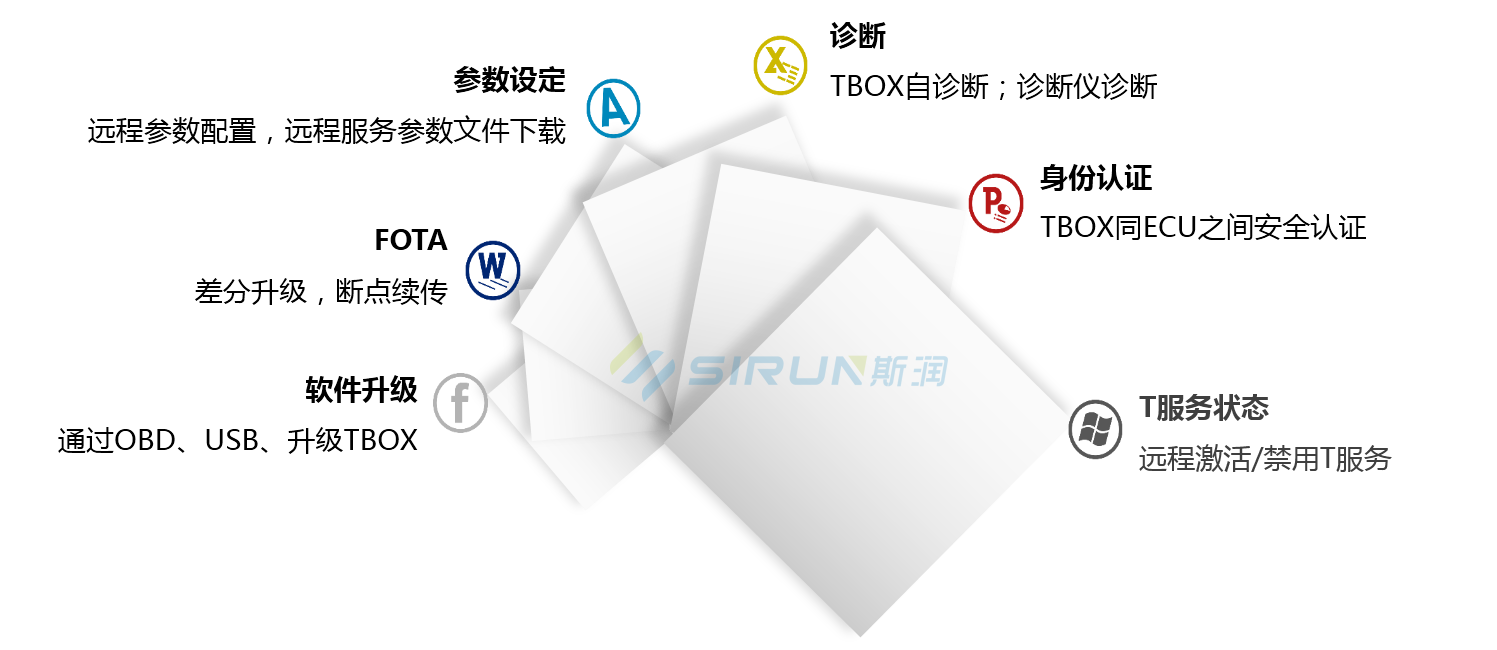 斯?jié)欆嚶?lián)網(wǎng)解決方案—T-Box 產(chǎn)品可實現(xiàn)移動通信、車輛信息采集和控制,提供包含實時監(jiān)控(地圖、圖表)、位置信息采集、語音輸入輸出、車機連接、WIFI/Bluetooth、 電源管理、遠程診斷等基礎功能,適用于乘用車前裝車聯(lián)網(wǎng)、商用車車隊管理、道路試驗遠程管理、新能源車遠程管理等應用場景。